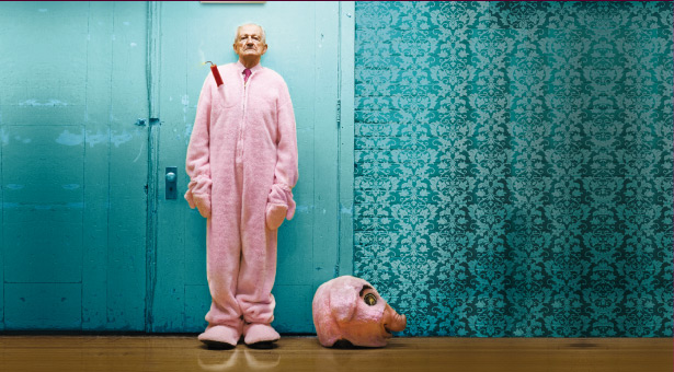 Un libro con un anziano signore vestito con una tuta rosa di peluches in copertina.