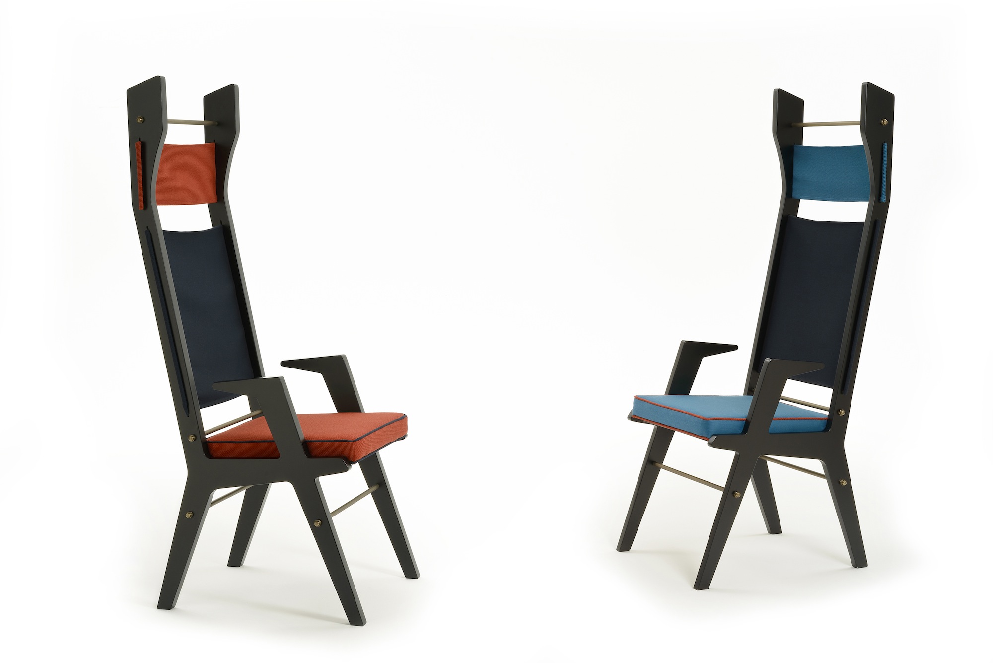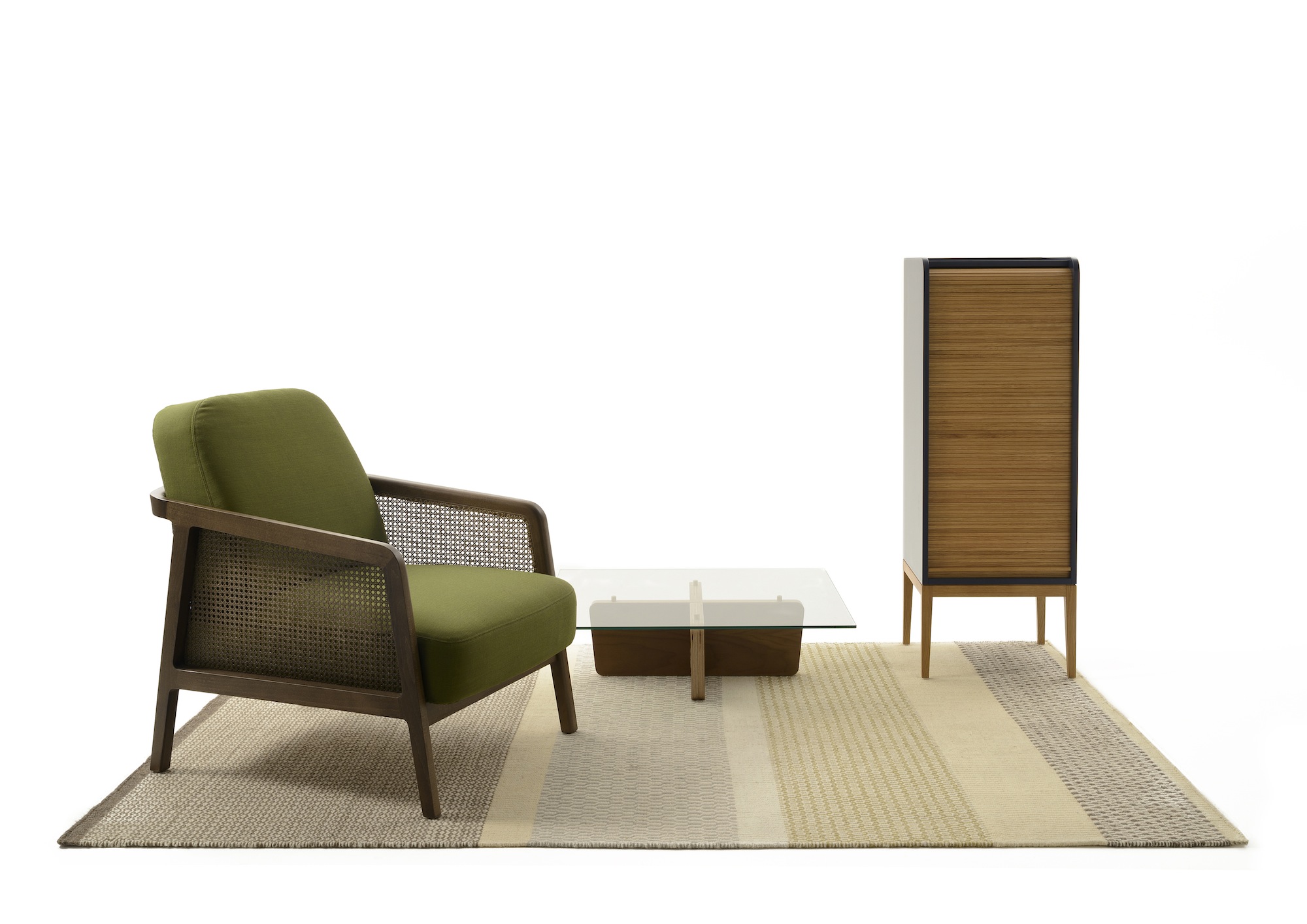 Ma che piacere incontrare Colé Italian Design Label, giovane marchio fondato da Matteo De Ponti e Laura Macagno, nasce nel 2011, lo seguo con interesse da quel dì e di anno in anno mi convince sempre di più; sarà anche per quell’aria di Bauhaus che ogni tanto qui respiro. Un modo aggiornato di fare design che si basa su ricerca espressiva orchestrata insieme a tutti i componenti della filiera produttiva. Ha una sua cifra che lo rende inconfondibile. A Londra oltre alla produzione presentata a Designjunction durante lo scorso Fuorisalone, si trovano anche recenti novità. Interessanti e affascinanti le sedute. La poltrona Vienna, disegnata da Emmanuel Gallina è la naturale evoluzione delle omonime della Vienna che va dalla fine dell’ottocento agli anni ’50, da Marcel Gascoin a E.J. Brussel. Ha una struttura in legno massello di faggio naturale o tinto noce canaletto con paglia artigianale in tono. Di Lorenz Kaz la LoKa, sintesi di vero amore per il design nordico con un caldo effetto Sud, sottolineato dall’uso di colori e materiali dal forte impatto visivo. La sua struttura è in massello di faggio laccato a poro aperto, con un’imbottitura disponibile in tessuto o pelle naturale. A completare il trittico, Colette di Lorenza Bozzoli, una sedia dall’imponenza evocativa di un trono. I braccioli sono virgole giganti che reggono la grammatica del segno; lo schienale è alto. In mdf laccato nero, i tessuti utilizzati hanno inserti di nastri decorati nei toni rosso africano e blu indaco.