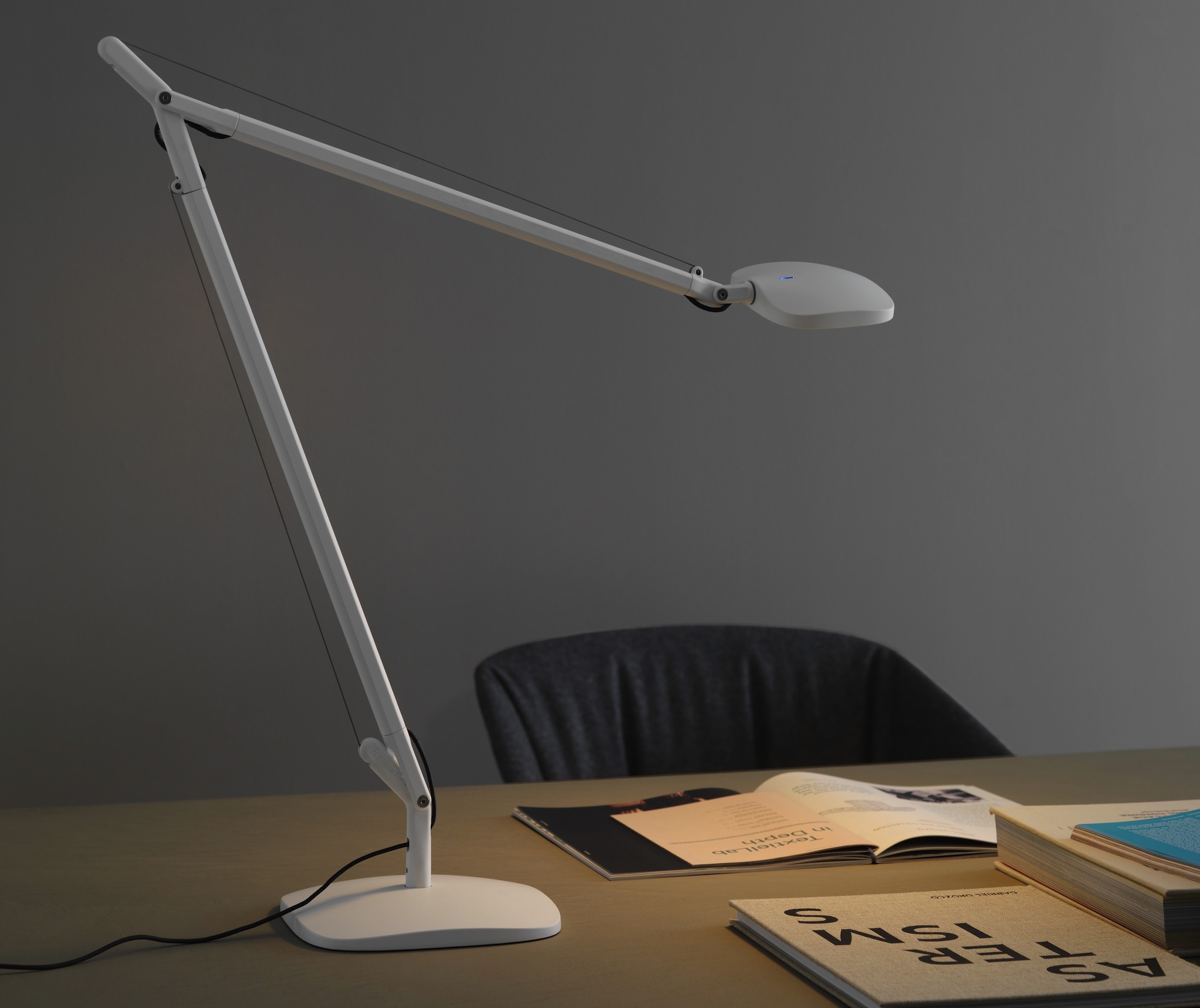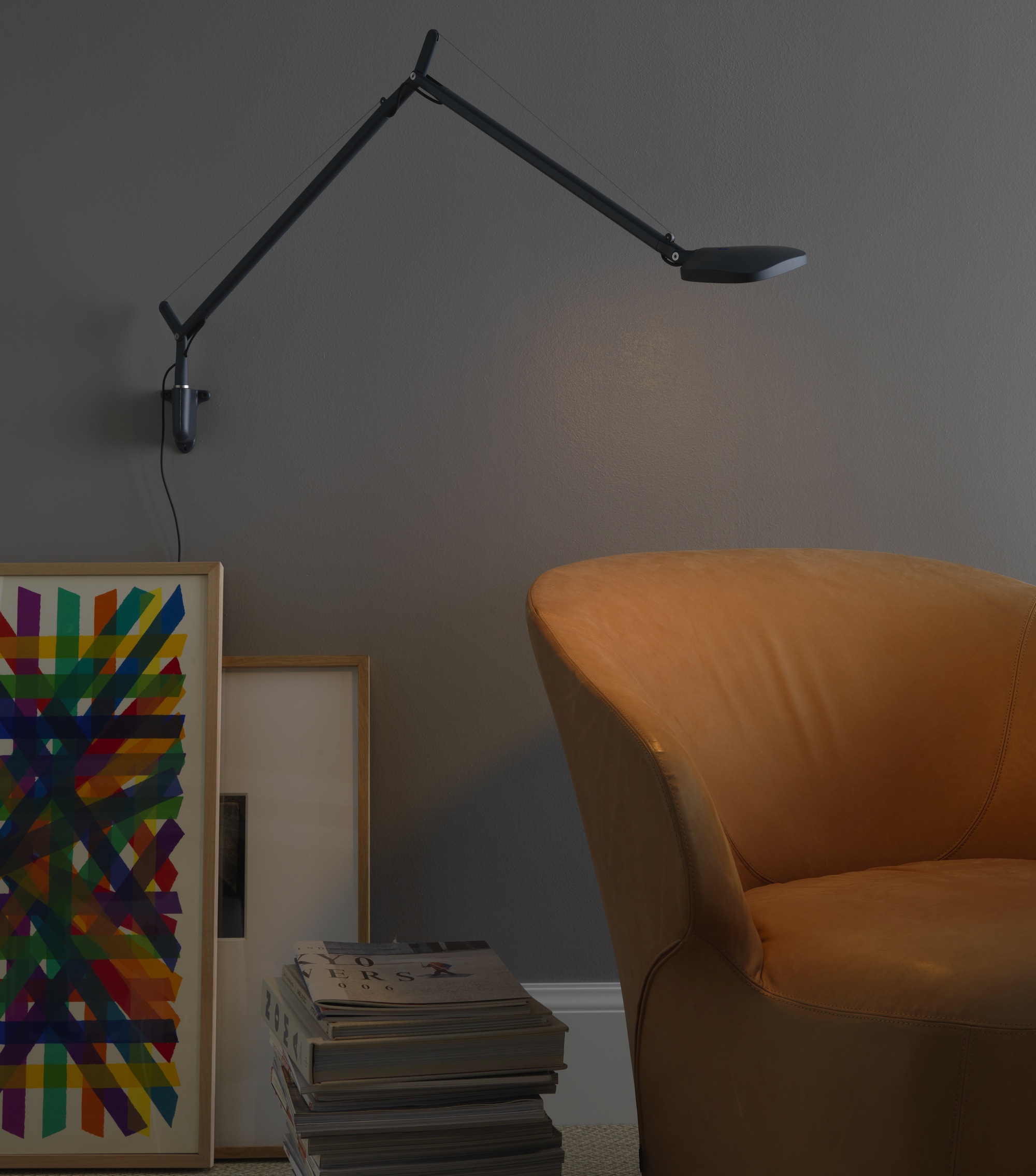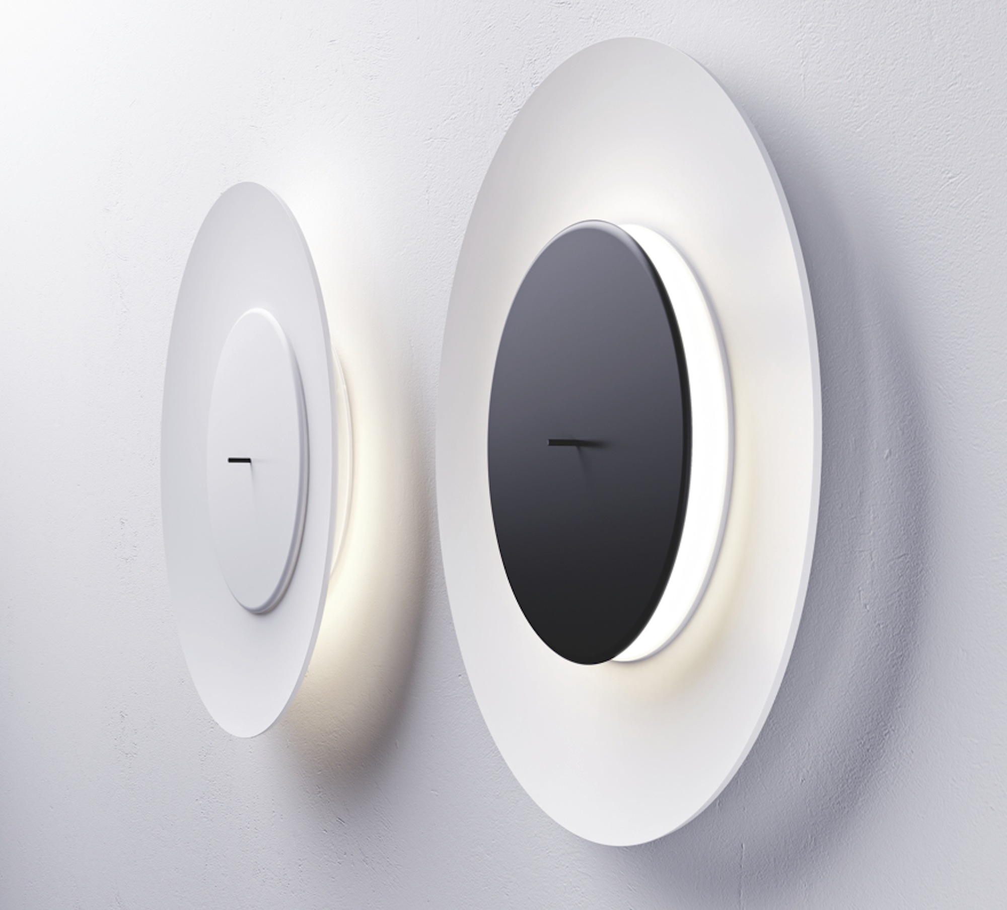 FontanaArte illumina! Per il brand italiano Mårten Claesson, Eero Koivisto e Ola Rune pensano a Io, non il solito ego, ma uno dei satelliti di Giove, scoperto nel 1610 da Galileo Galilei. Lampada da parete è un piccolo disco lunare curvato con fonti luminose a LED. Grazie ad una montatura dal doppio asse di rotazione, la lampada ruota sia su quello longitudinale sia lungo quello trasversale, permettendo una totale gestione della luce. Lunaire di Ferréol Babin, anche questa da parete, stupisce per gli effetti luminosi che ricordano il fenomeno delle eclissi. Un grande diffusore in alluminio dalla forma concava ospita al suo interno un disco frontale e la fonte luminosa. Produce una luce diversa in base a come si posiziona rispetto al diffusore. Odo Fioravanti interpreta le task-light con Volée, il più contemporaneo esempio di lampada da tavolo. Nasce da una riflessione sui mutamenti degli stili di vita e di lavoro; una trasformazione che riassume un cambiamento epocale: dalla “postazione di lavoro” al “lavoro in qualsiasi postazione” dove carta e penna convivono con i più innovativi strumenti informatici e tecnologici. Oggetto flessibile e intuitivo, con un semplice movimento della mano si attiva un dispositivo elettronico che accende e spegne l’apparecchio senza che esso venga toccato, mentre un sensore a sfioramento consente la regolazione del flusso luminoso con tre livelli di intensità. Una scheda LED genera una luce morbida e regolabile che si diffonde proprio tra le nostre mani e sul piano di lavoro. Un sistema Time Out consente lo spegnimento automatico della lampada dopo 8 ore di funzionamento.