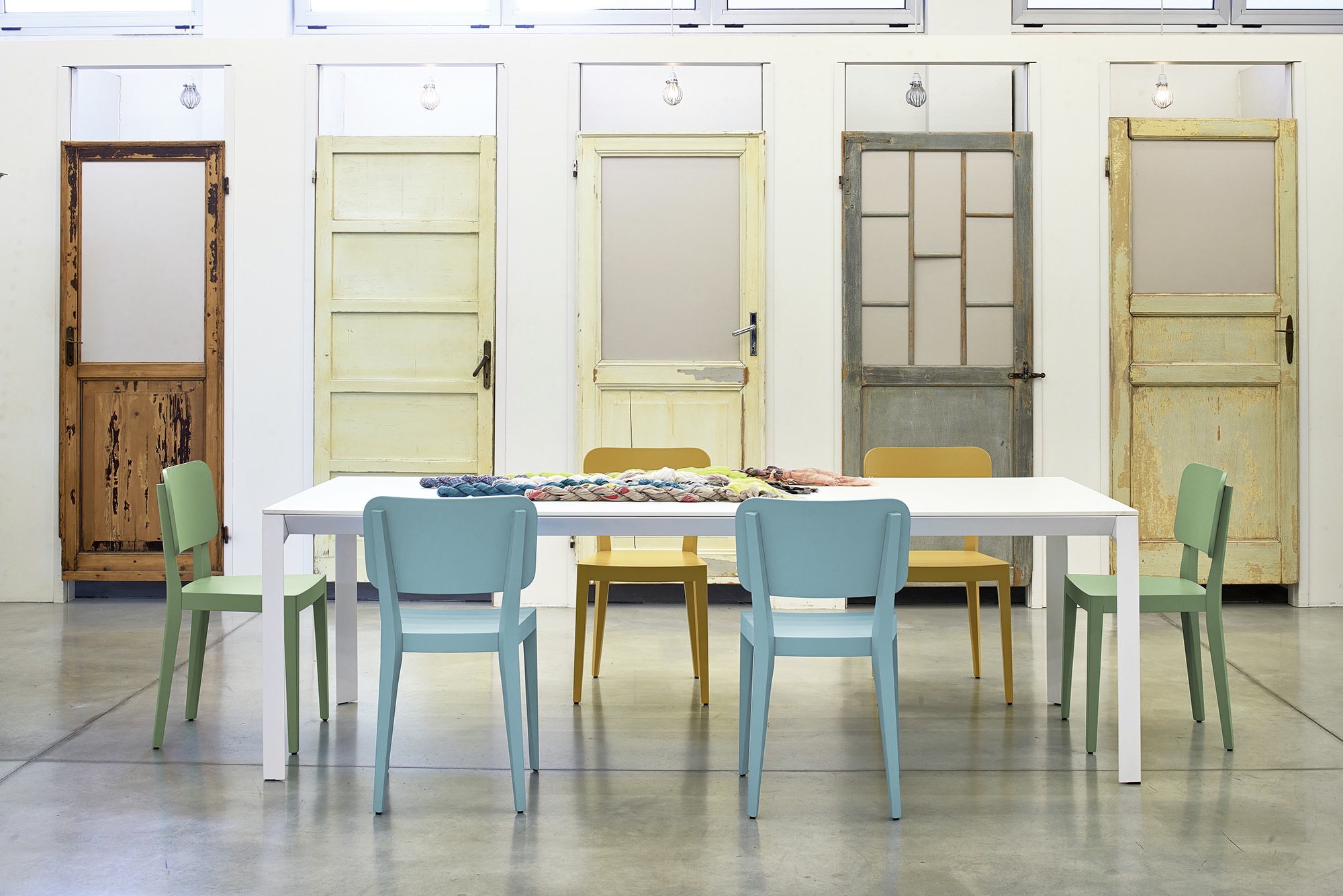 Molto ricca la selezione dal nuovo catalogo di Varaschin. Ciacola è una collezione di sedie disegnate dal duo Calvi e Brambilla, la struttura è in massello di faggio con schienale e seduta in multistrato, che può essere anche imbottita. Classica semplicità fortemente evocativa, sembra quasi di averne posseduta una in passato. Stessa sensazione anche per le Fit di Daniele Lo Scalzo Moscheri, in alluminio verniciato a polveri il rivestimento è in tessuto elastico portante. Sempre dello stesso designer, la collezione Senia, anche per queste, legno massello di faggio o acciaio verniciato a polvere, è imbottita e può essere disponibile in tessuto, in pelle o ecopelle, suo il tavolo Poros con colonna centrale in massello di faggio, il piano può essere tondo o quadrato E pure Units, un oggetto comune che diventa concept di arredamento reale utilizzando elementi contenitori aperti; è una struttura modulare sottile in alluminio a forma di lamelle. I moduli possono essere combinati insieme per progettare composizioni a parete complete. Christopher Pillet pensa alla stagione calda e disegna Summerset, Tavolo con base in acciaio verniciato a polvere in vari colori, il piano può essere rifinito con diversi materiali e si accompagna alla sedia e alla poltrona lounge con struttura in tondino di acciaio verniciato a polveri oppure cromato lucido.