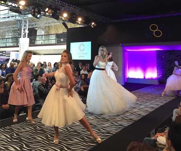 A RomaSposa 2016 ecco sfilare in anteprima la collezione Sophia 2016 Carnevali Sposi: protagonisti assoluti, il pizzo e il colore rosa! Pastello, sfumato o cipria, total look o dettaglio, il rosa è la nuance di tendenza della collezione Sophia 2016, che propone tanti modelli, che spaziano dai classici abiti lunghi ai più non convenzionali abiti corti che richiamano le linee anni ’50.