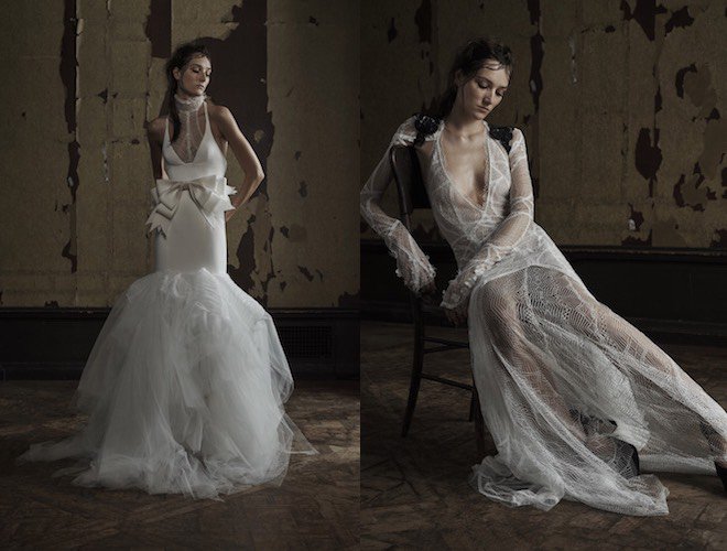 Ogni modello è diverso e particolare, ma molti prediligono uno stile “nude look” riproposto in diverse soluzioni: audaci ricami in pizzo, scollature profonde, vertiginosi spacchi, cut dress sui fianchi; abiti da sposa che forse si addicono poco ad un matrimonio in Chiesa, ma che sono perfetti per una sposa che non vuole passare inosservata. Lontano dalle mode tradizionali, gli abiti da sposa Vera Wang donano un look non convenzionale e di sicuro un po’ sopra le righe!