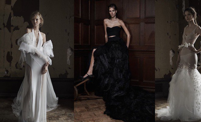 E’ universalmente riconosciuto che Vera Wang bridal è sinonimo di rock-dark, ma per questa primavera 2016 la sposa della Wang è molto più femminile e delicata del solito, anche se non manca un abito completamente nero – firma inconfondibile della maison – e alcuni dettagli in altri vestiti. Lasciato perdere lo stile “minimal” del 2015, in questa collezione tornano il tulle, lo chiffon, strascichi morbidi, fiocchi, applicazioni, ricami e le trasparenze, le vere protagoniste.